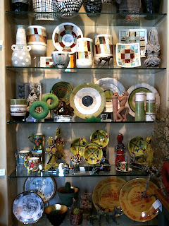 I spent yesterday in the company of a most interesting Capetonian woman whose knowledge of her city’s history, architecture, food and art is rich and presented with anecdote and authority. Cape Town has a broad scope of craft work to offer; much of the most interesting work is “project” work initiated by an artist, designer or otherwise interested person who sets up the business structure and then teaches the production skills to a community of poor men and women. The craft ranges from Tea Bag art (tea bags are emptied, ironed flat, decorated with paints and then glued, like decoupage, on to trays, coasters, picture frames, cards, etc) to the ubiquitous wire work (Streetwires Studio) and animal beadwork (Monkeybiz Bead Project).